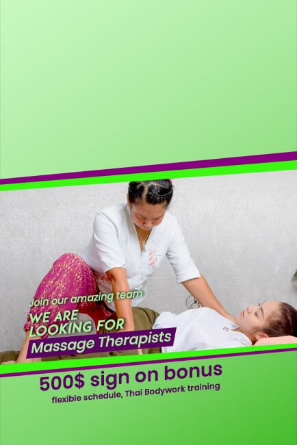 Thai Lotus Bodywork is actively looking for professional and reliable massage therapists to join our team of practitioners, part time/full time.